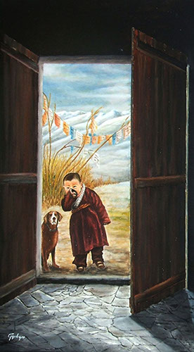 Contadino villaggio di Shago Tibet / Olio su tela, 40x60, 2011 / Disponibile