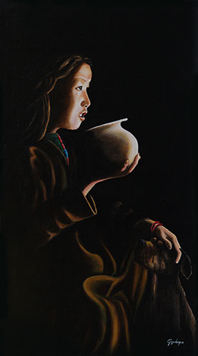 Contadina villaggio di Shago Tibet / Olio su tela, 40x60, 2011 / Disponibile