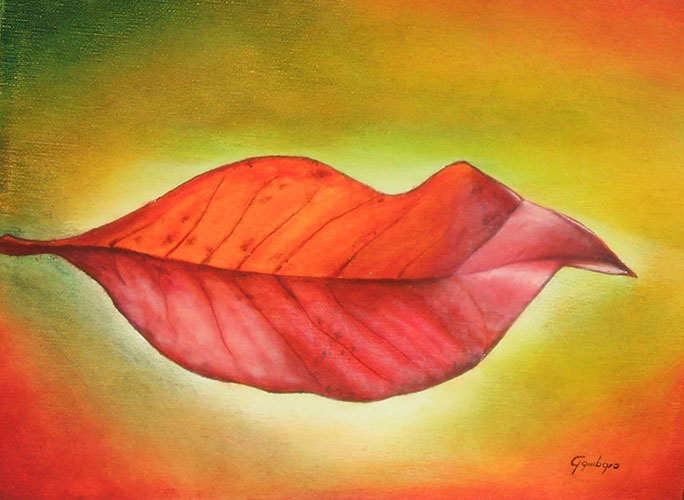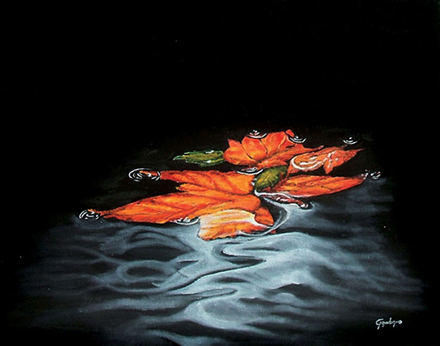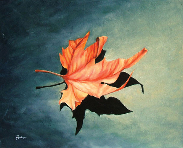 Foglia secca nell'acqua / Olio su supporto telato, 50x40, 2015 / Disponibile