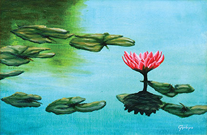 Fior di loto nello stagno / Olio su tela, 120x70, 2019 / Disponibile