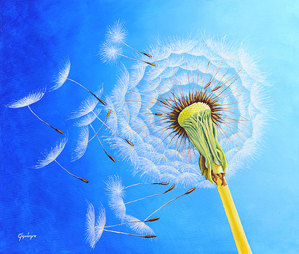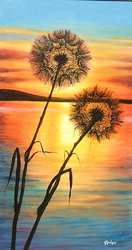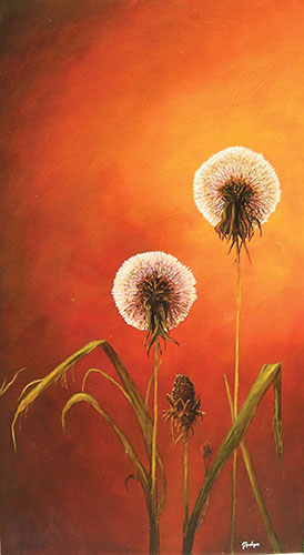 Soffioni di campo al tramonto / Olio su tela, 50x90, 2013