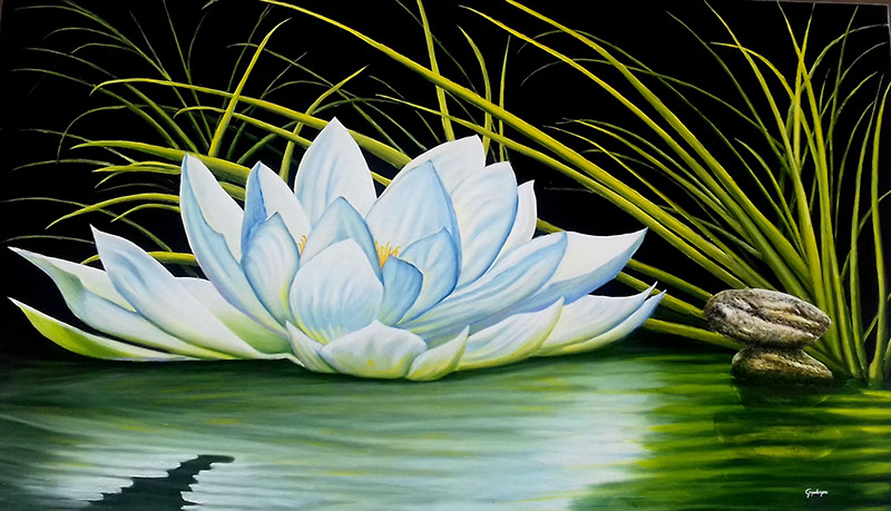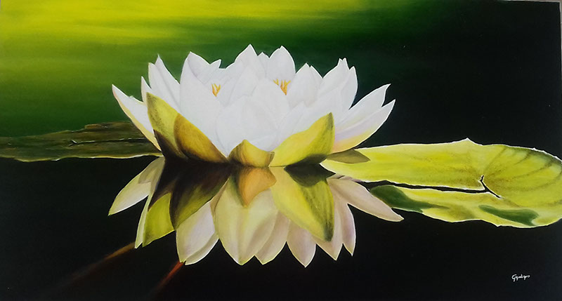 Grazia e purezza del fior di loto / Olio su tela, 90x50, 2019 / Disponibile