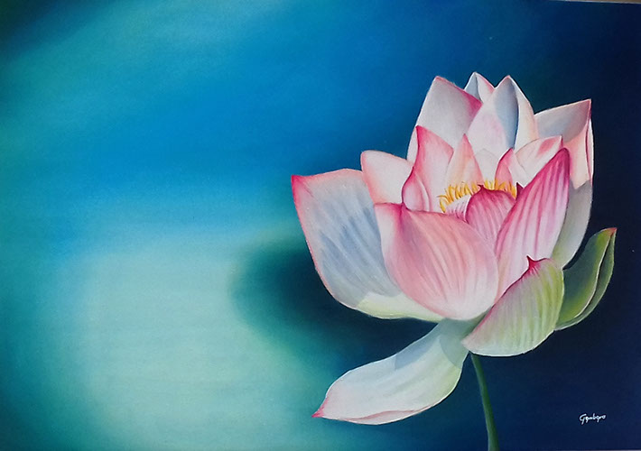 Fior di loto La delicatezza nel blu / Olio su tela, 70x50, 2019 / Disponibile