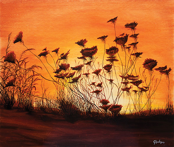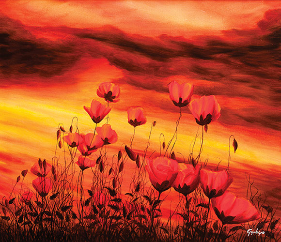 Tramonto sui papaveri / Olio su tela, 70x60, 2014