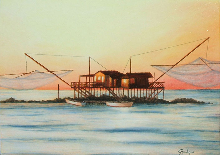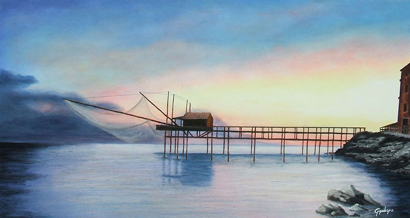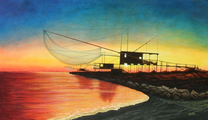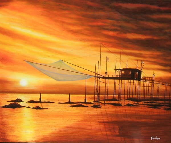 Trabocchi al tramonto / Olio su tela, 40x30, 2013