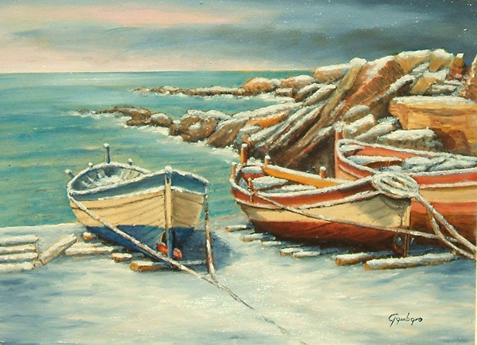 Barche sotto la neve / Olio su supporto telato, 40x30, 2008