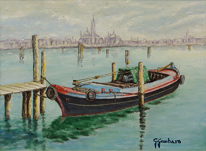 Barca trasporto merci a Venezia / Olio su supporto telato, 40x30, 2008