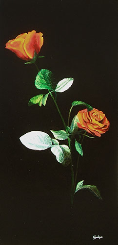 Rose nella penombra / Olio su supporto telato, 50x70, 2016