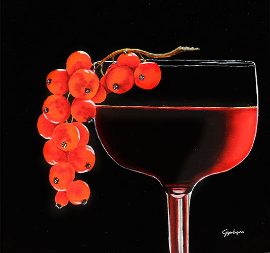 Vino e ribes / Olio su tela, 50x50, 2017 / Disponibile