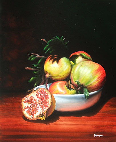 Melograni suggestive / Olio su tela, 70x50, 2018 / Disponibile