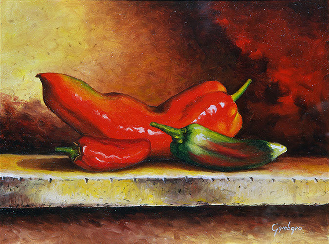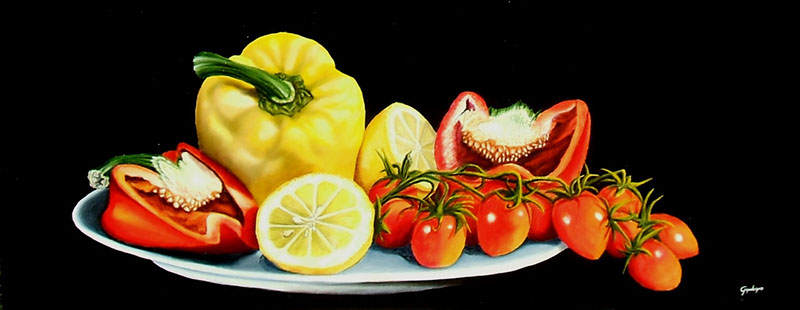 Peperoni, limoni e piccadilly / Olio su tela, 100x40, 2016