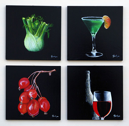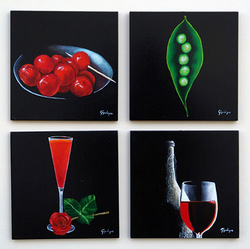 Ciliegie eleganti / Olio su tela, 50x50, 2017