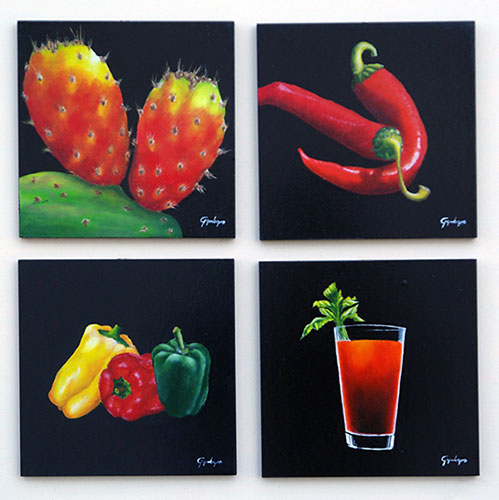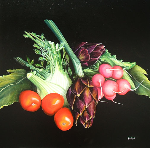 Natura morta - Ortaggi / Olio su supporto telato, 60x60, 2016 / Disponibile