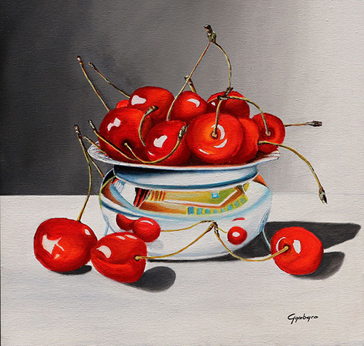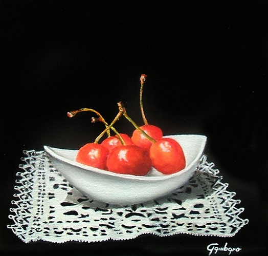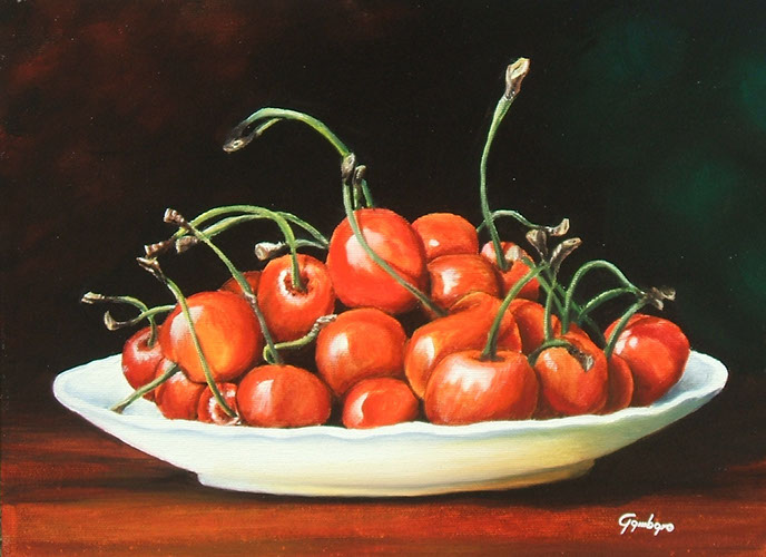 Natura morta - Ciliegie nel piatto / Olio su tela, 40x30, 2016