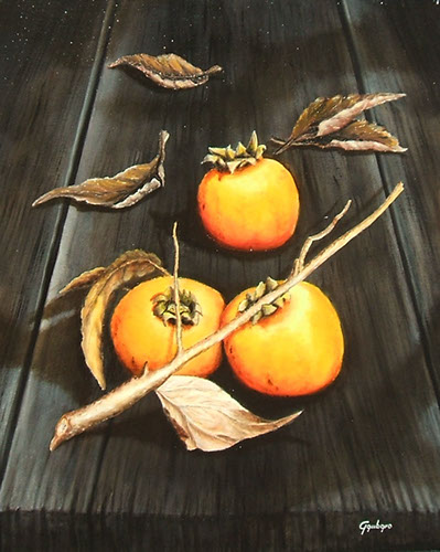 Tre cachi / Olio su supporto telato, 40x50, 2016