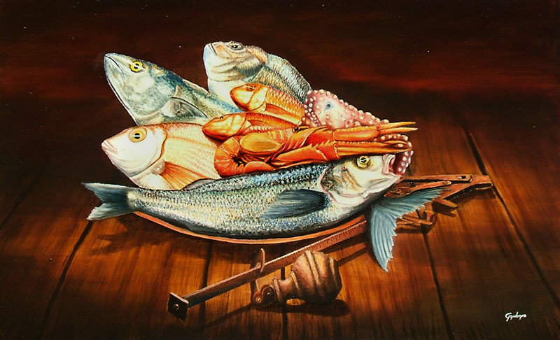 Stadera con pesci / Olio su tela, 80x48, 2016 / Disponibile