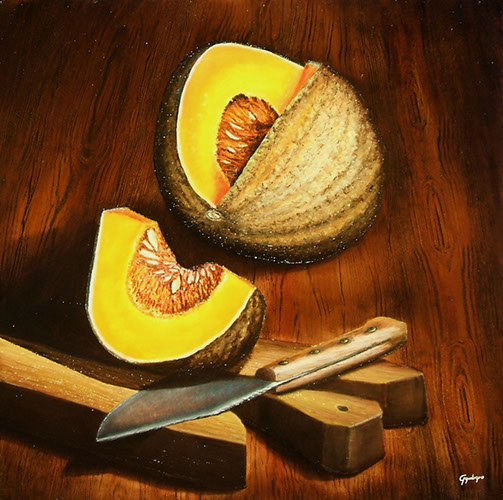 Luce piena. Zucca / Olio su supporto telato, 60x60, 2016 / Disponibile