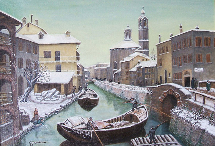 Milano, naviglio sotto la neve, 1845 / Olio su supporto telato, 60x40, 2007