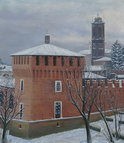 Castello di Galliate. Torrione est / Olio su tela, 70x80, 2022