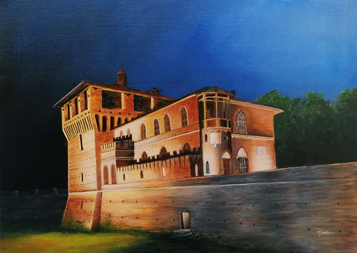 Scorcio notturno del castello di Galliate, lato ovest / Olio su tela, 70x50, 2023 / Disponibile