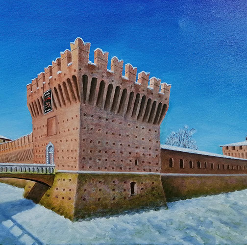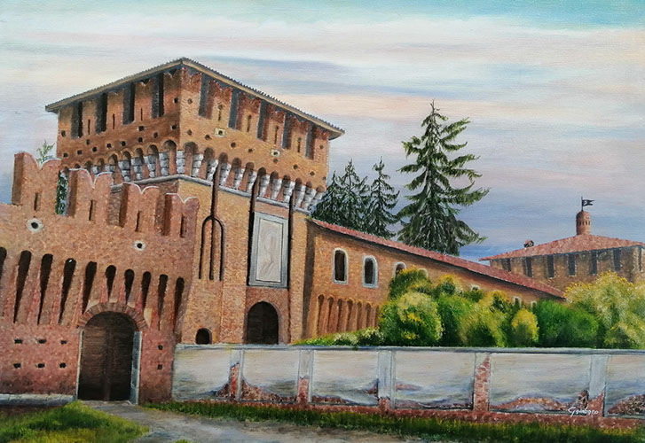 Castello di Galliate, torrione Nord-Est / Olio su tela, 70x50, 2025 / Disponibile