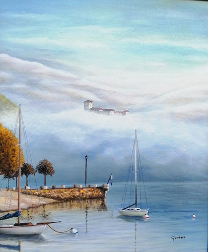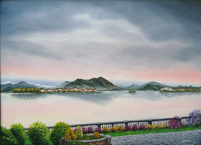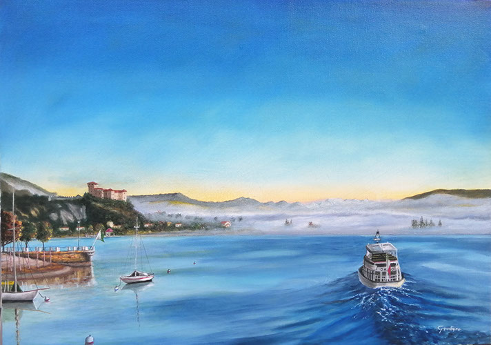 Da una perla all'altra su Lago Maggiore / Olio su tela, 70x50, 2022 / Disponibile