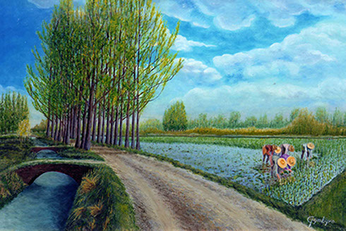 Risaie e mondine nella valle del Ticino / Olio su tela, 40x60, 2009