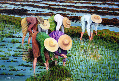 Lavoro nella risaia / Olio su tela, 80x60, 2009