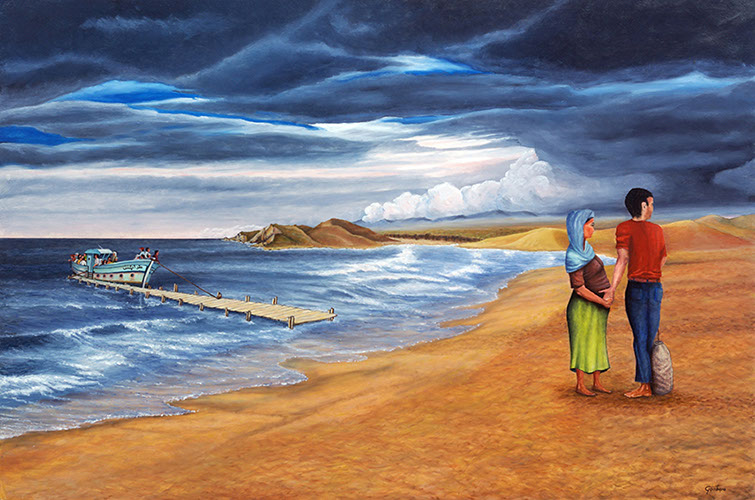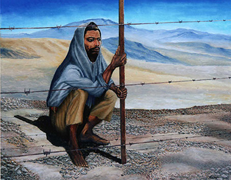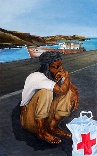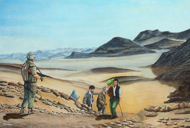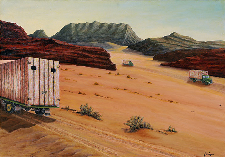 Da Misurata a Brak, viaggio per un lager libico / Olio su tela, 100x70, 2010