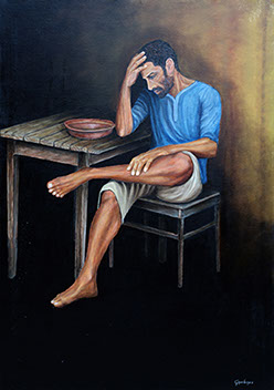 Un uomo che ha fame non è un uomo libero / Olio su tela, 70x100, 2010